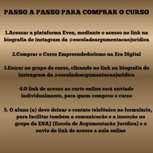 Aprenda a impulsionar o seu negócio com a Dra. Natália Machado, que em menos de 5 anos tornou-se Referência Nacional no Empreendedorismo, e recebeu premiações de qualidade com reconhecimento Nacional e Internacional no Estado de São Paulo/SP e no Rio de Janeiro/RJ. O aluno (a) aprenderá na prática como iniciar o seu empreendimento, com dicas valiosas, desde a registro de Marca, criação de CNPJ, criação de sites, dentre outras dicas de Markenting Digital e e-commerce.